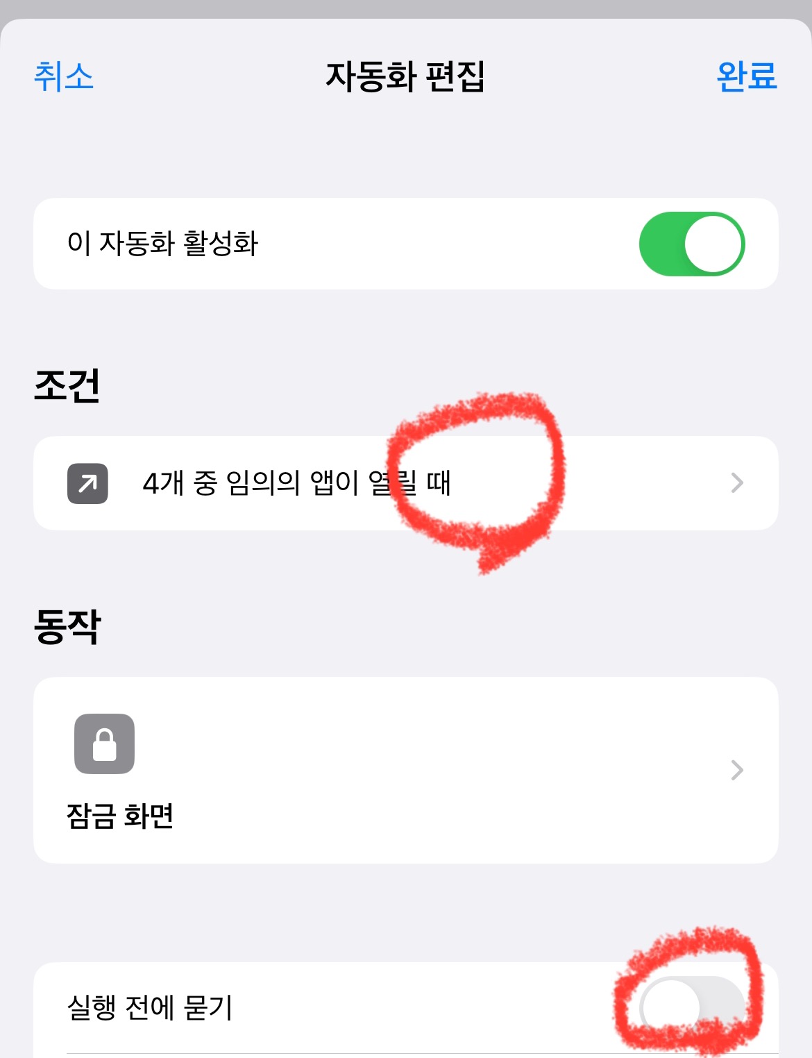 실행 전에 묻기가 활성화되어있으면, 잠금해? 말아? 이렇게 뜬다고 생각하시면 됩니다!