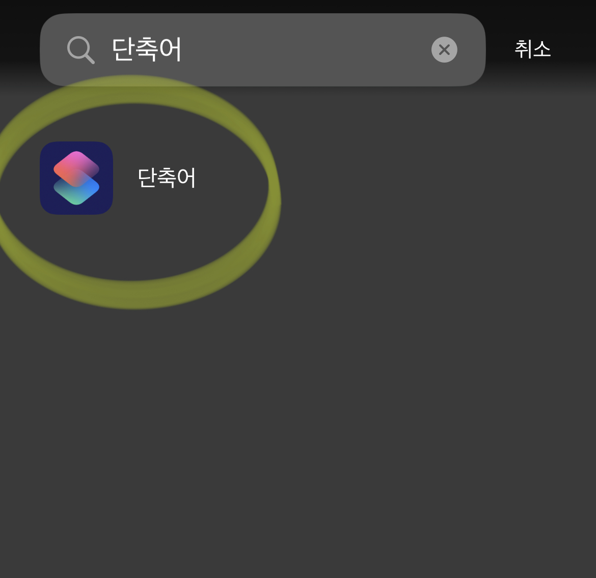 아이폰 앱 검색에서 [단축어] 폴더를 누르셔야 해요~~