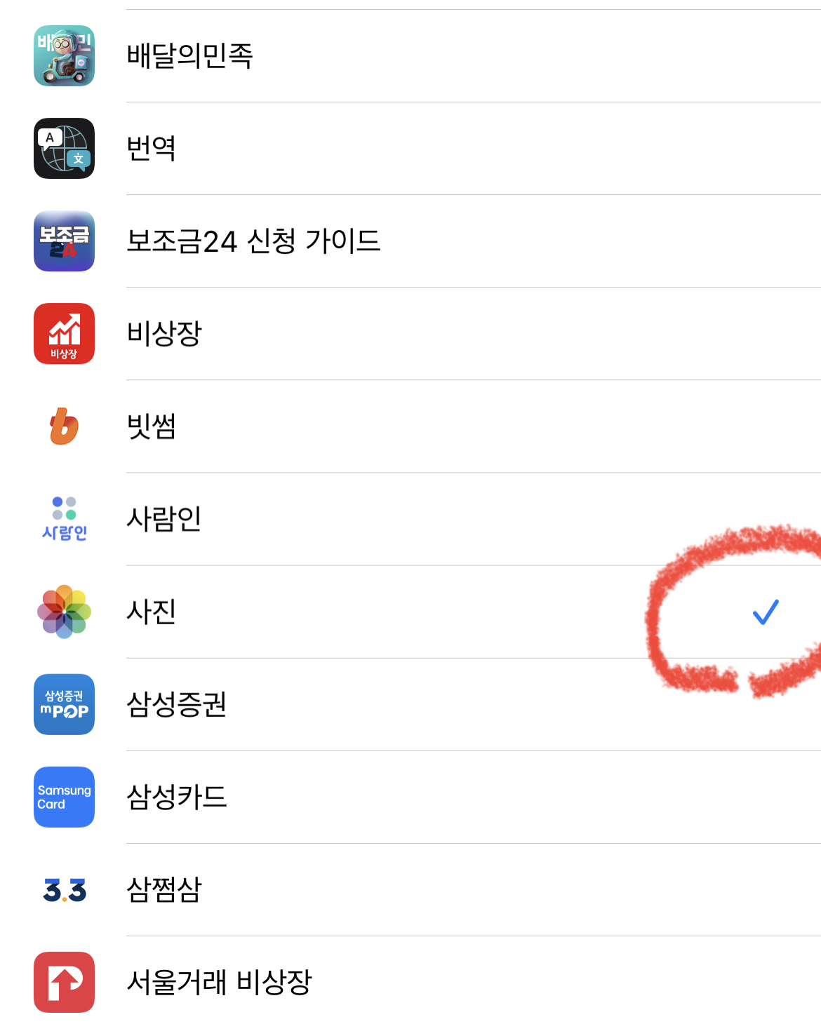 하단에 보시면, 설정할 앱들을 [체크] 하시면 됩니다!
