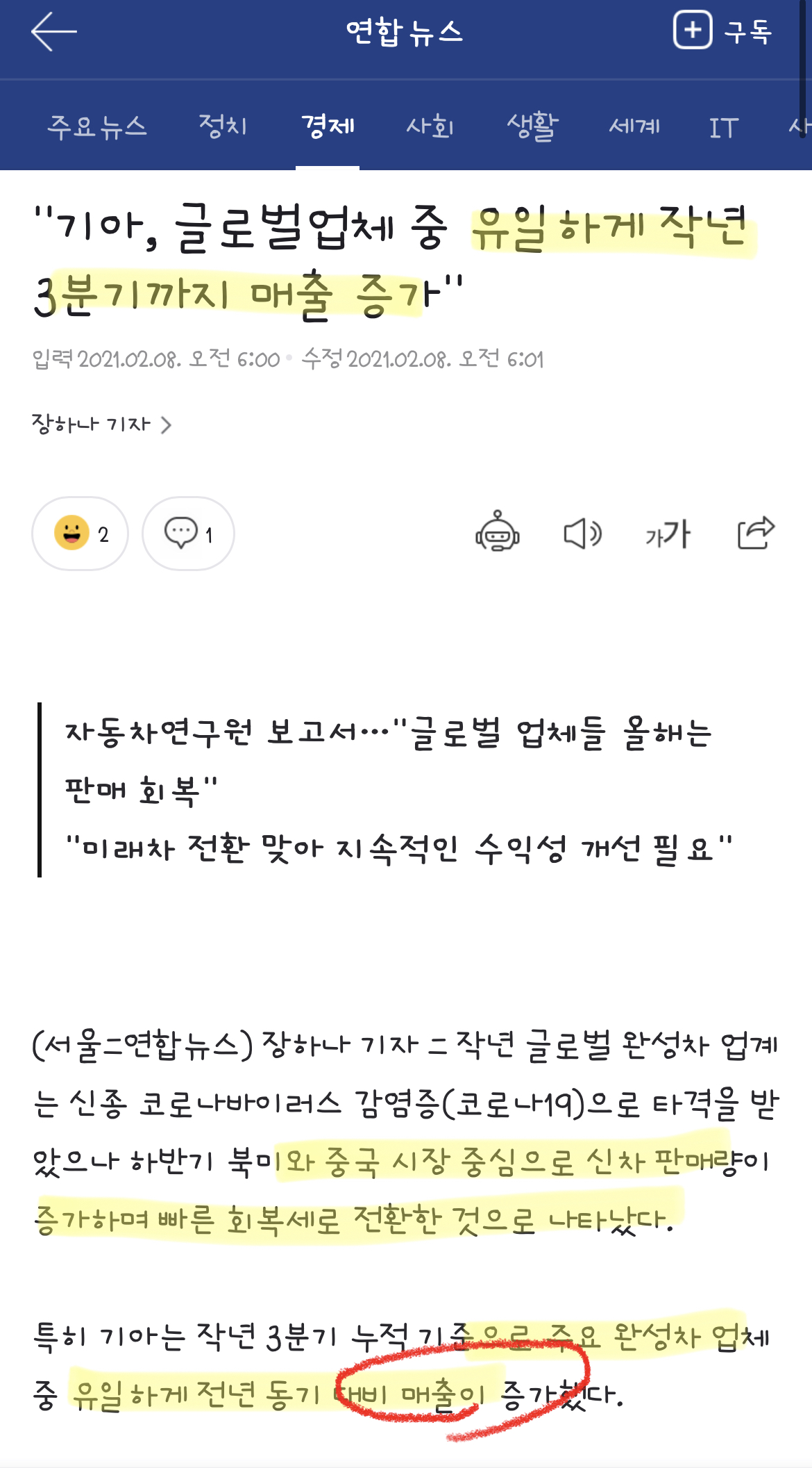 기아차는 작년 글로벌업체중 유일하게, 매출 증가 했습니다.