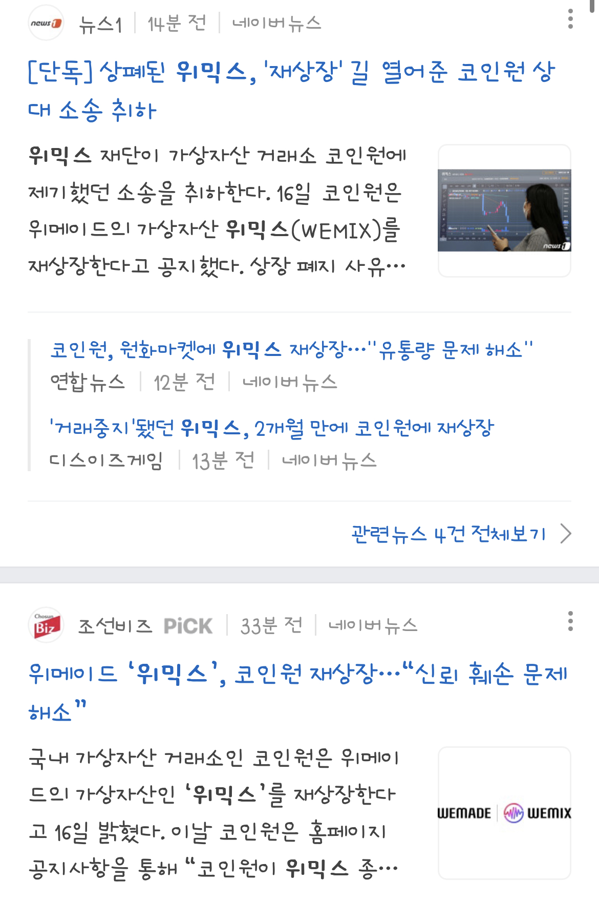 크게 이슈로는 코인원에 위메이드 상장한다고 합니다